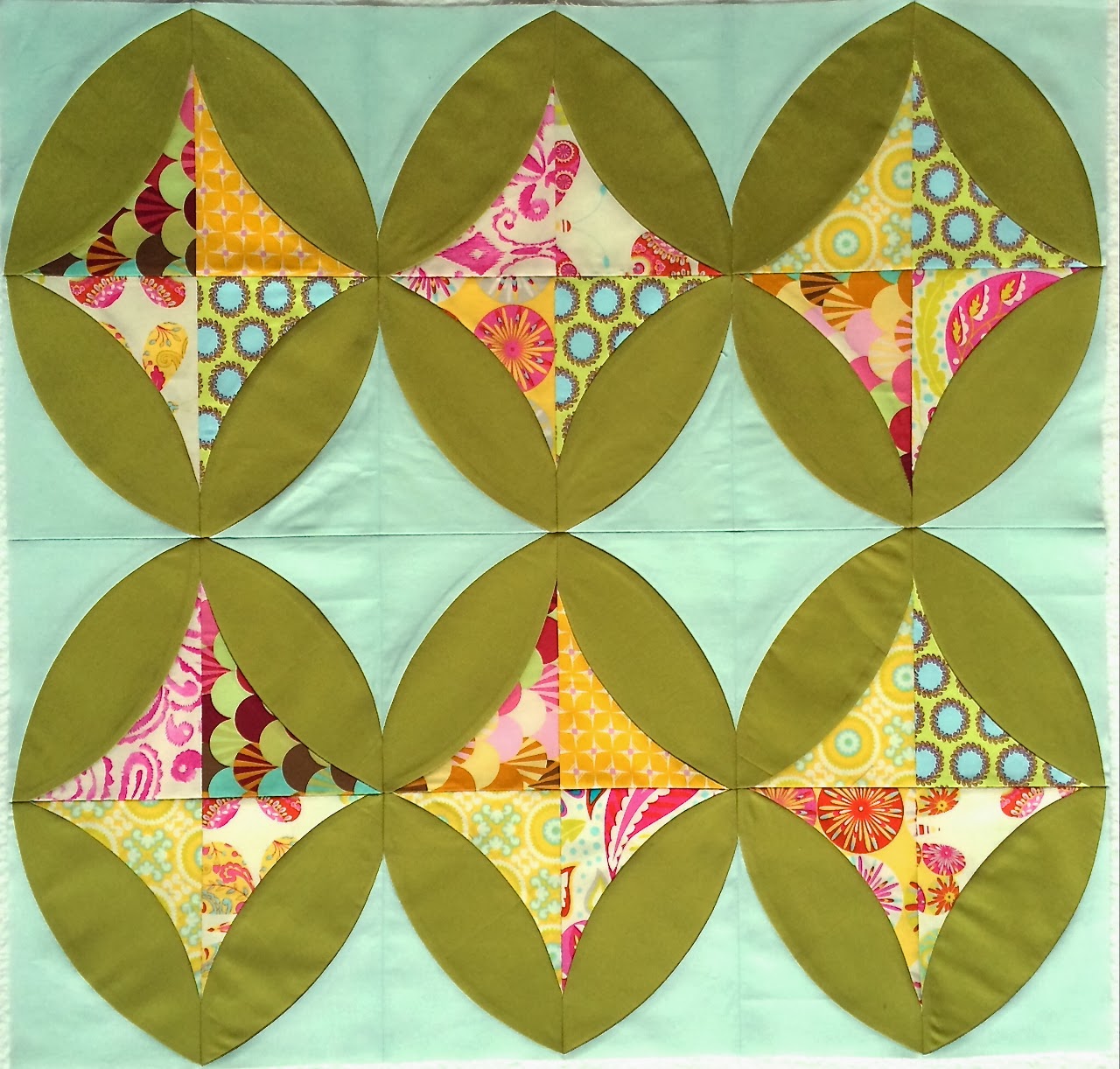 From background fabric cut (48) 6" x 8" rectangles.