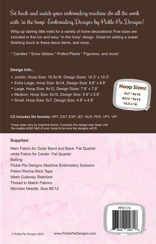 Best prices on Snowman Multi Mats In The Hoop ME by Brewer Sewing Supplies and all embroidery supplies at Ann The Gran. We meet or beat any competitor prices.
